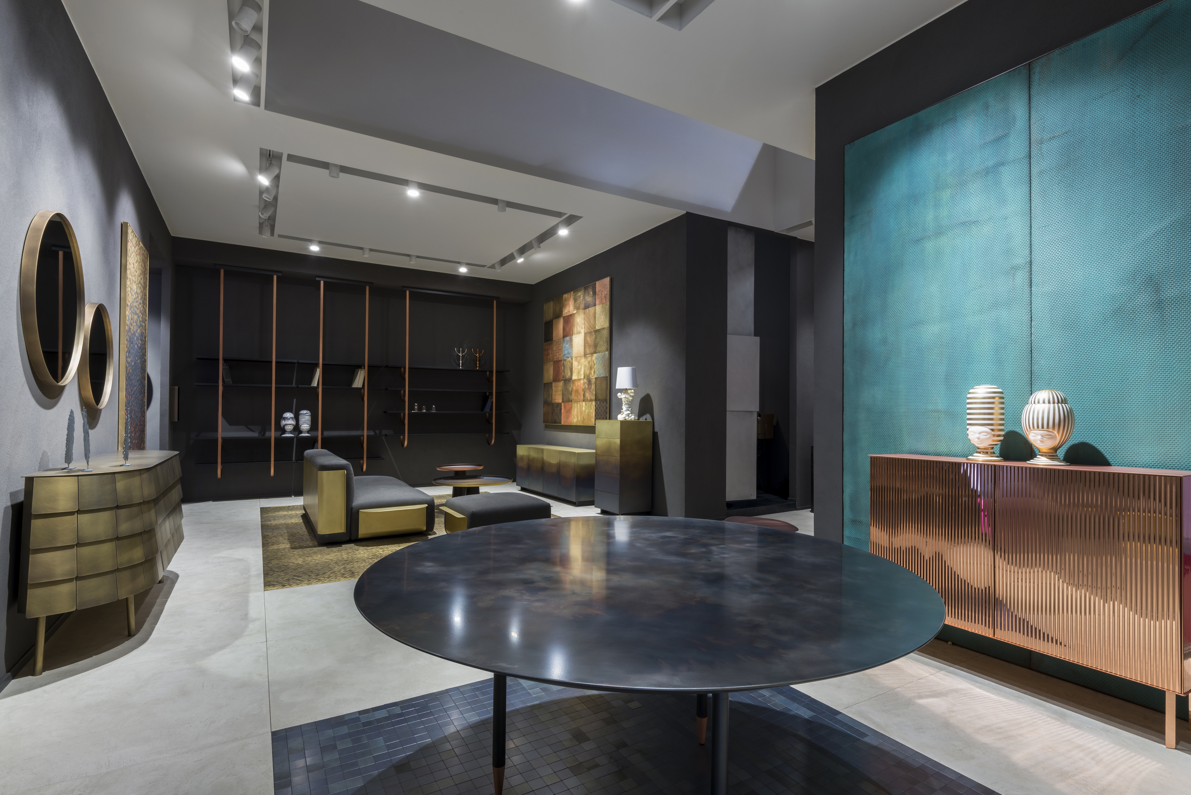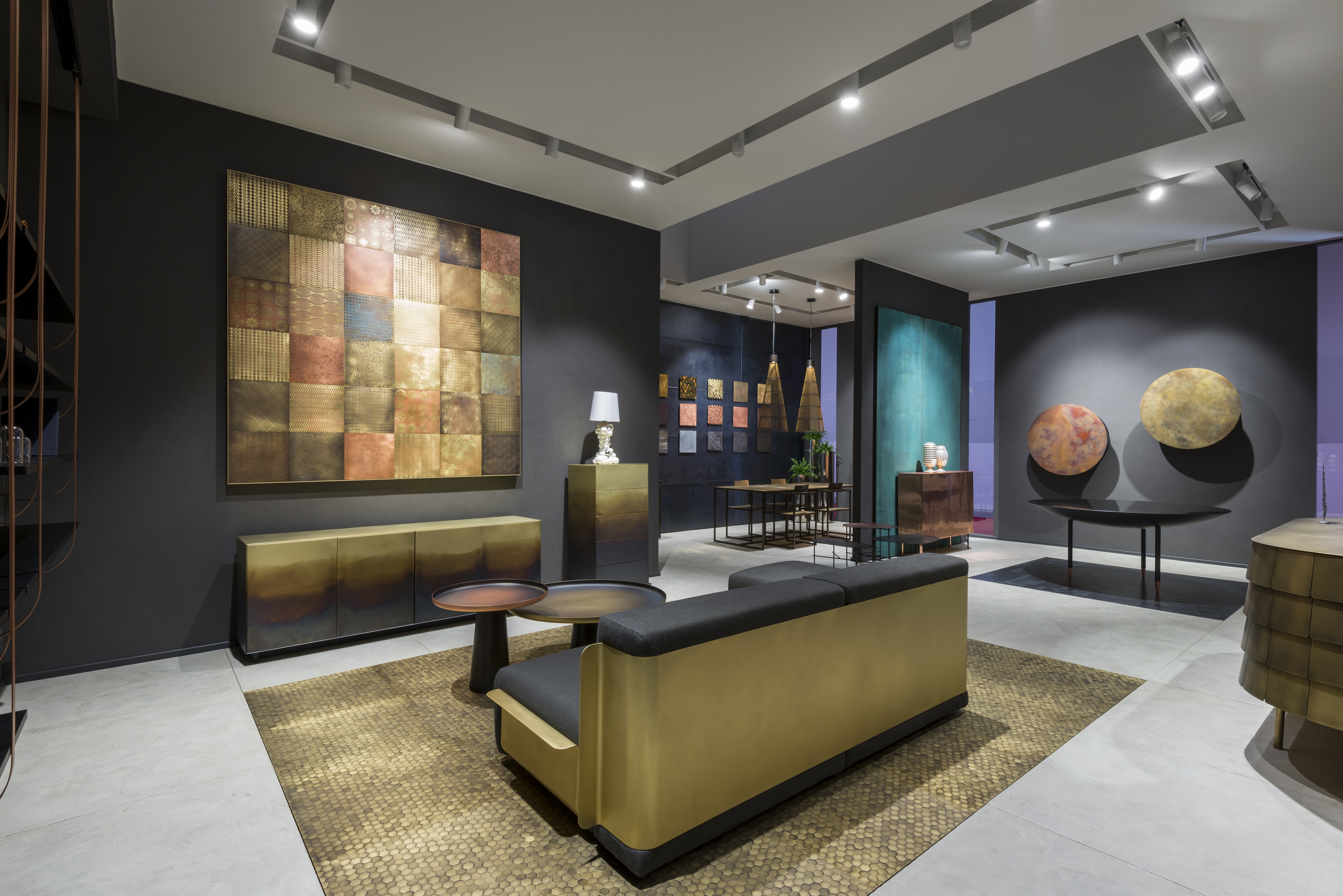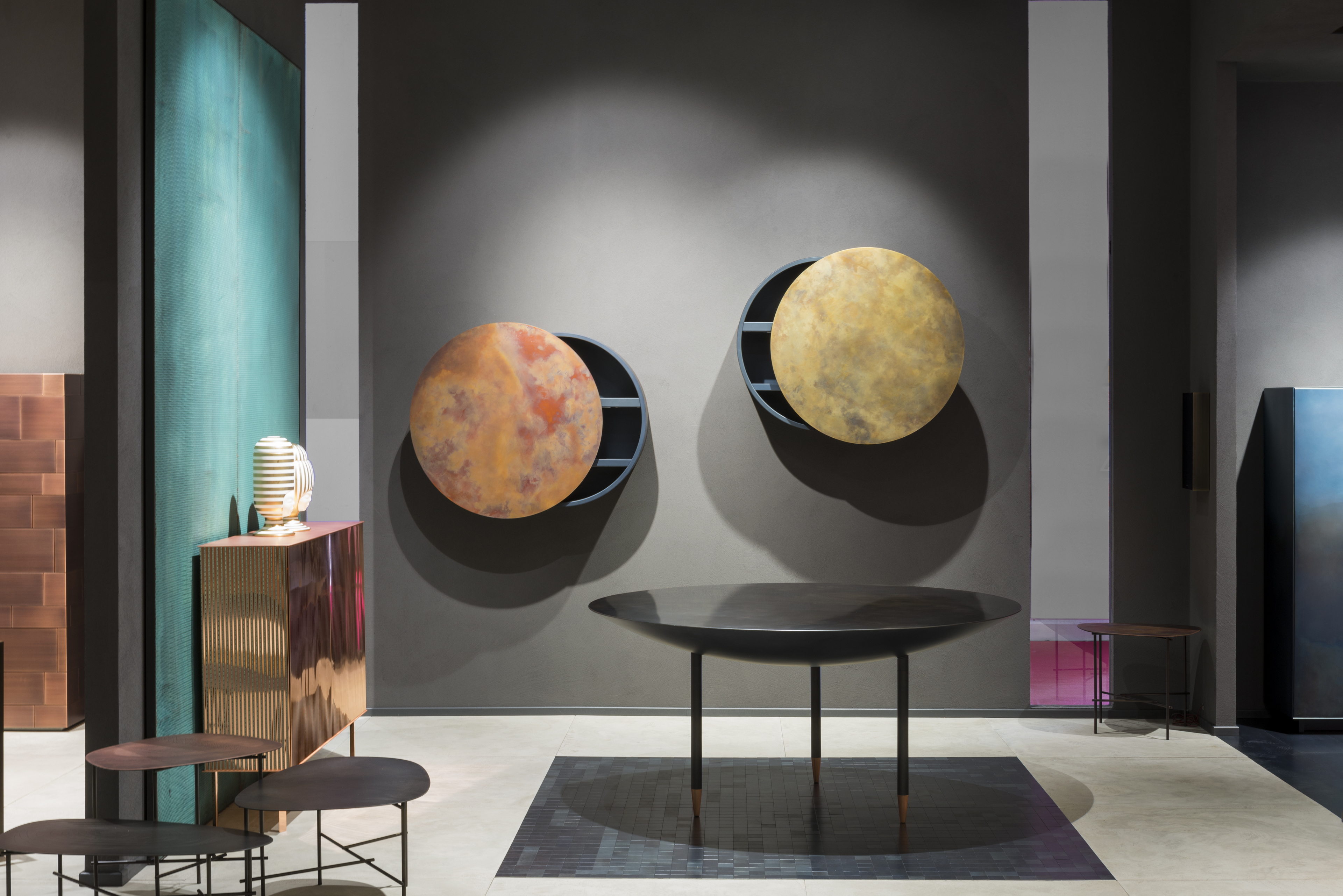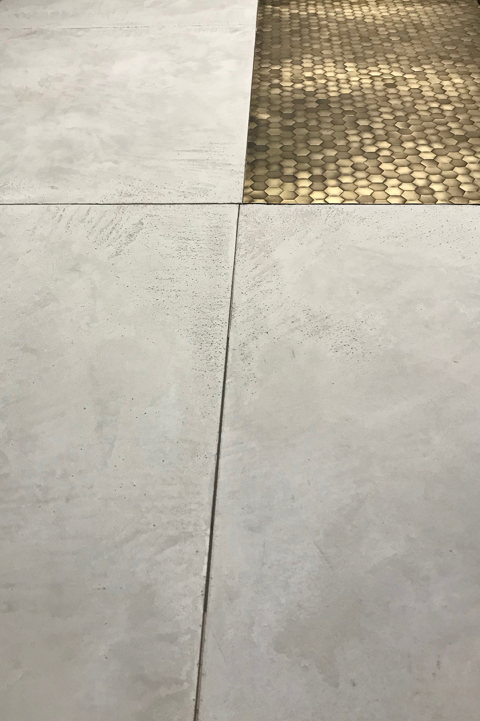Stand De Castelli Salone del Mobile 2018 in Milan, made with mineral plaster TerraTon Floor Structured Polvere (dust) color, photos by Federico Sgarbossa