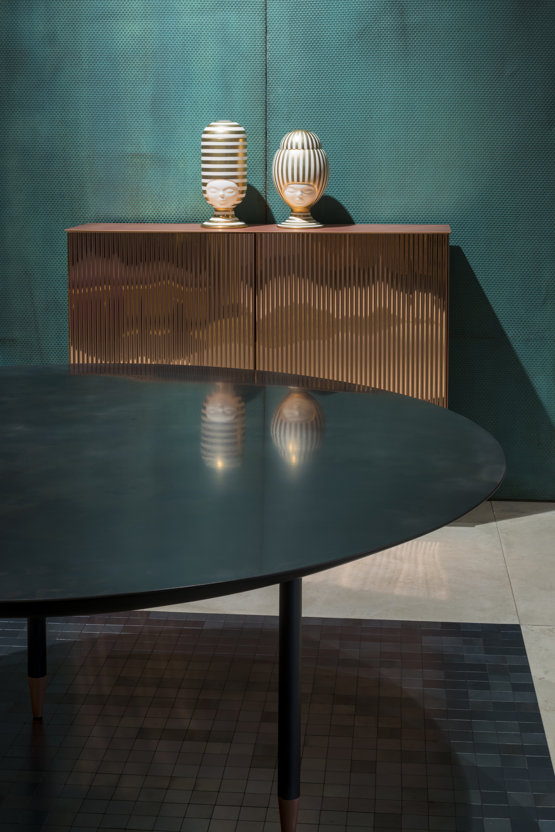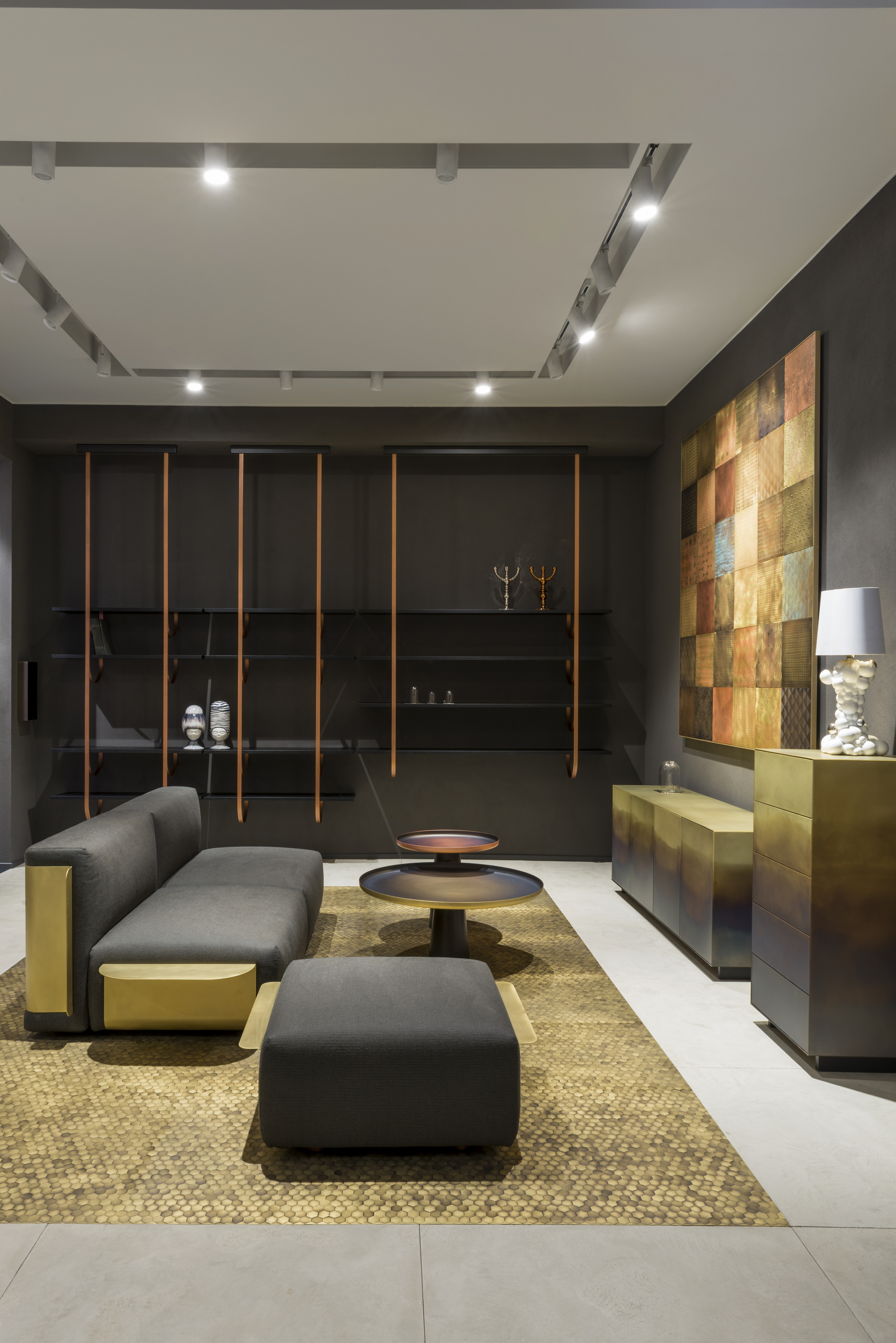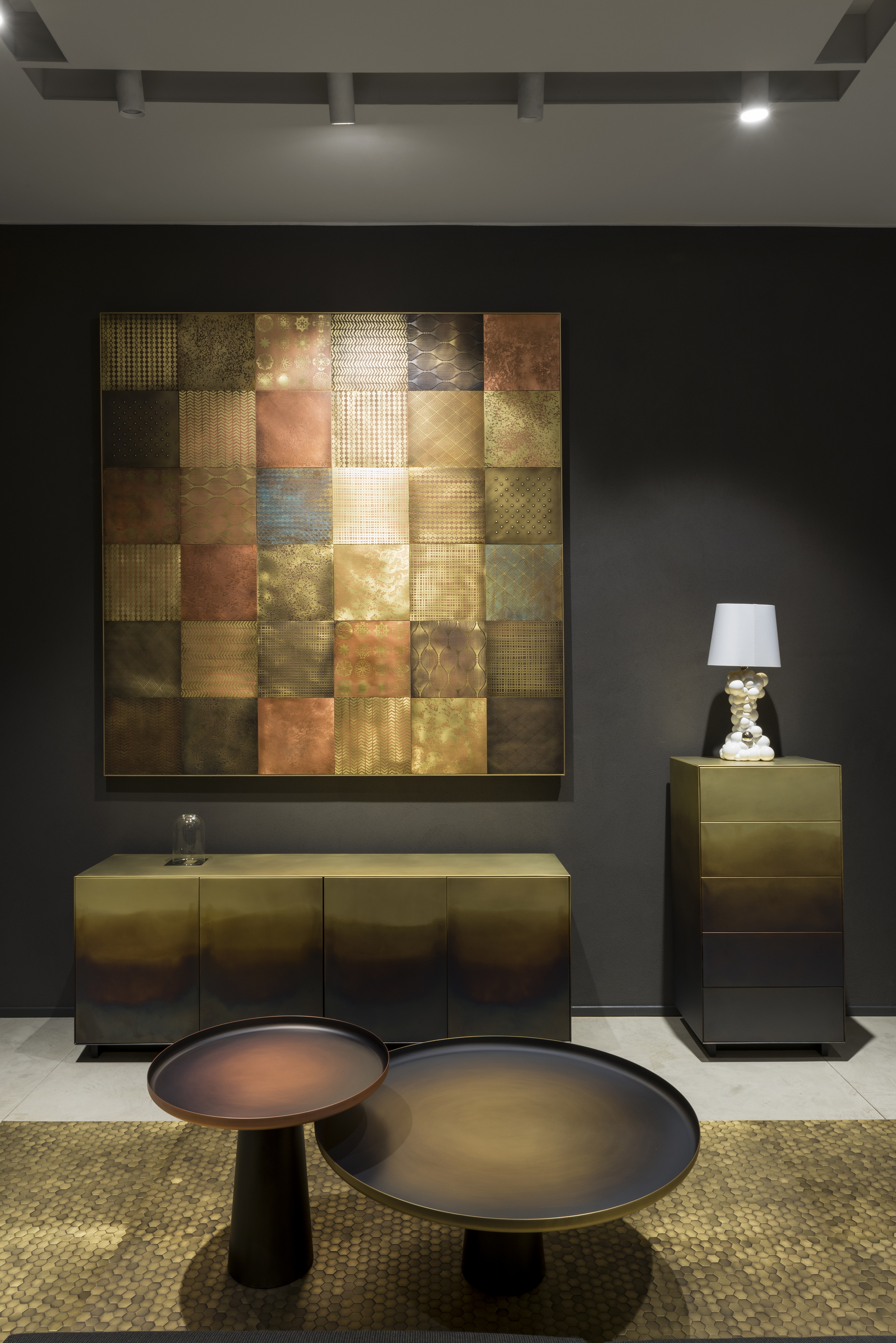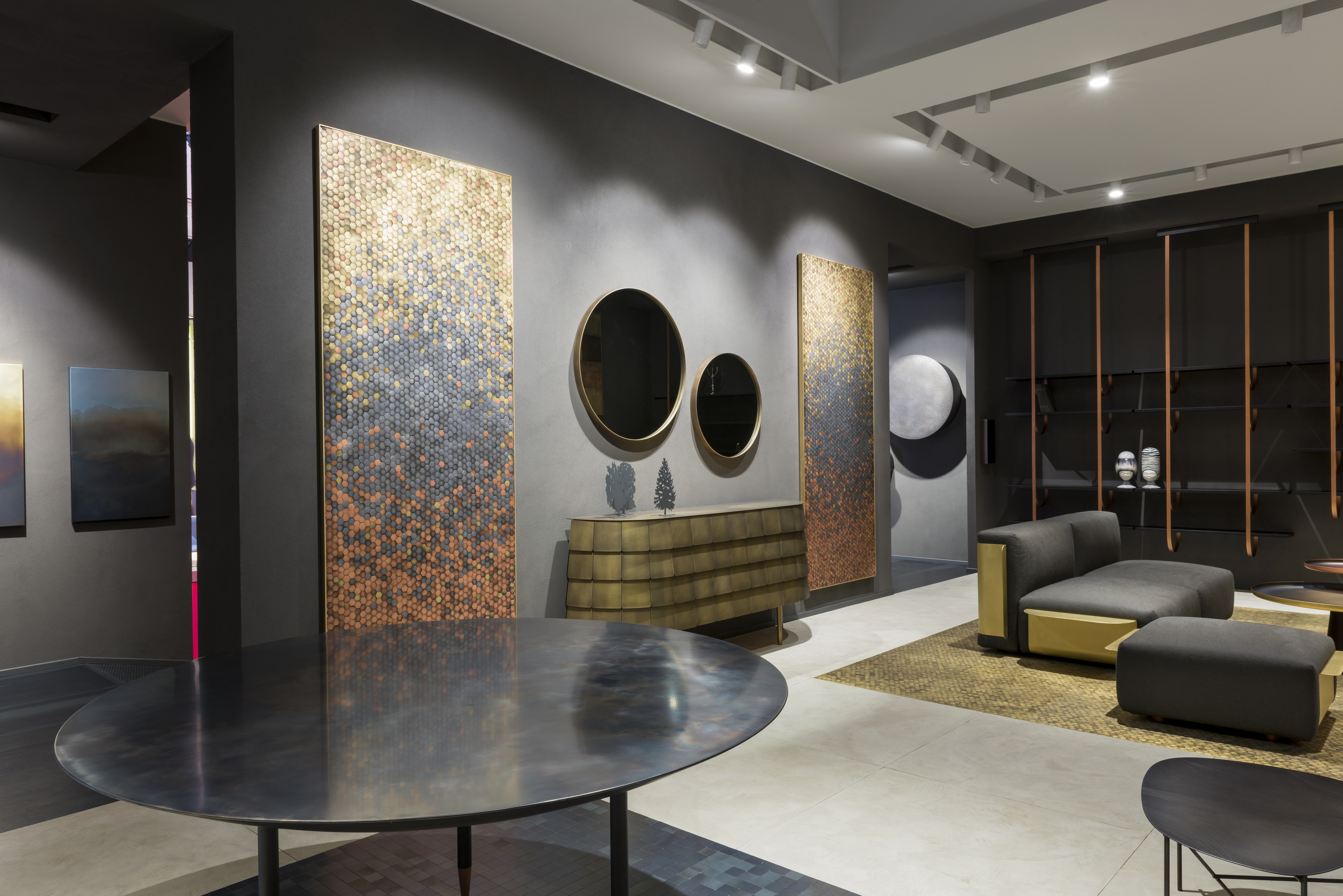 Stand De Castelli Salone del Mobile 2018 in Milan, made with mineral plaster TerraTon Floor Structured Polvere (dust) color, photos by Federico Sgarbossa