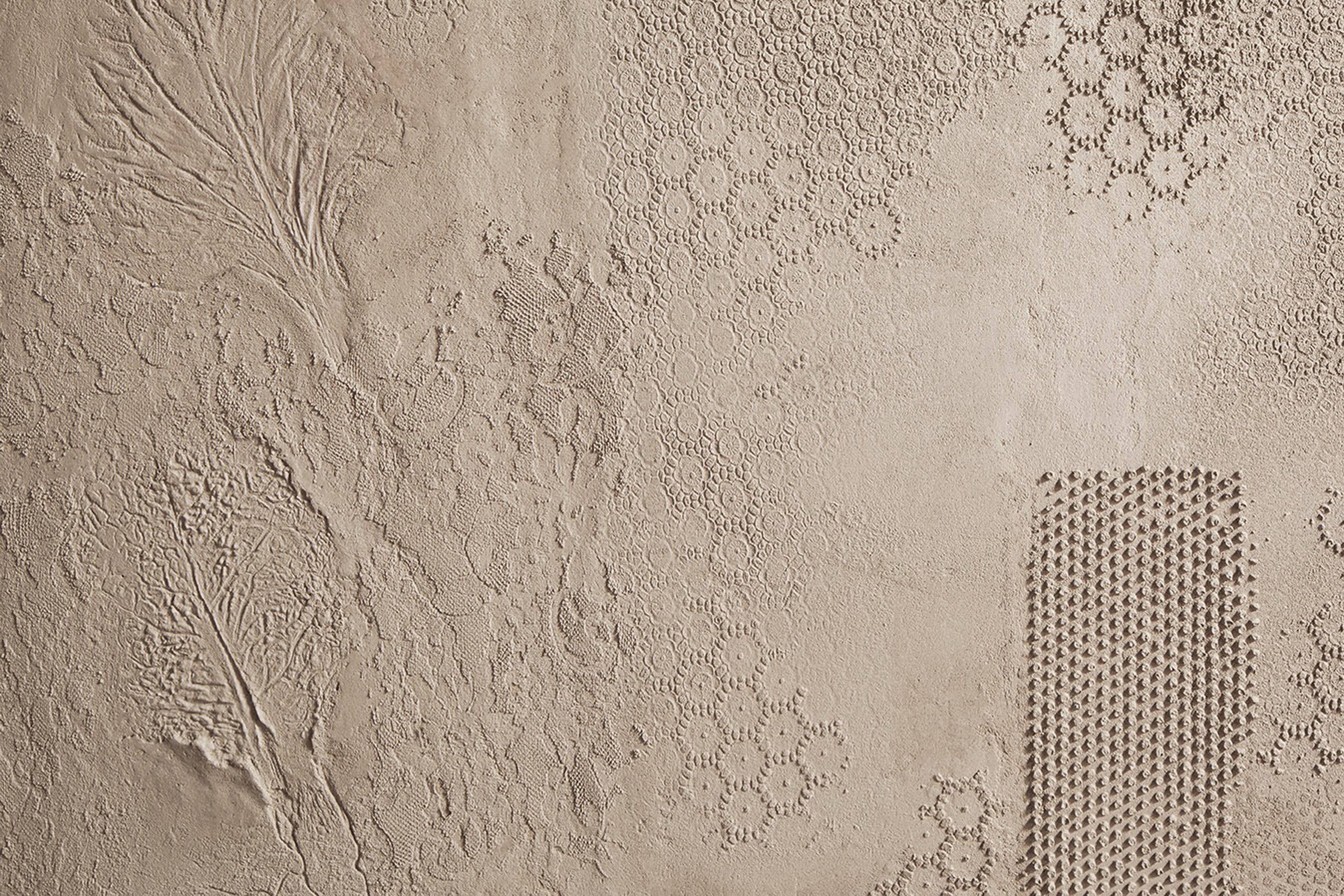 Le texture aggiungono dimensioni tattili e percettive alle superfici, attraverso l'aggiunta di elementi naturali. Juta, grano, canapa e riso ne aumentano la matericità. Mica, madreperla ed ematite danno alla terra un riflesso leggero e brillante. Onice, sodalite e quarzo danno alla terra un aspetto usato e consumato, simulando il passaggio del tempo carico della sua lunga storia, ricordi e calore.